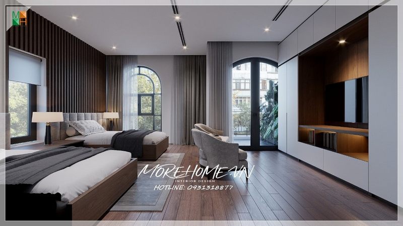 Đem lại cho căn phòng ngủ sự thông thoáng nhờ cửa kính rộng giúp ánh sáng và không khí lan tỏa khắp không gian phòng dễ dàng
