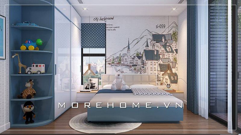 Thiết kế nội thất phòng ngủ con trai đẹp, gam màu xanh nhẹ nhàng được coi là điểm nhấn ấn tượng đẹp mắt