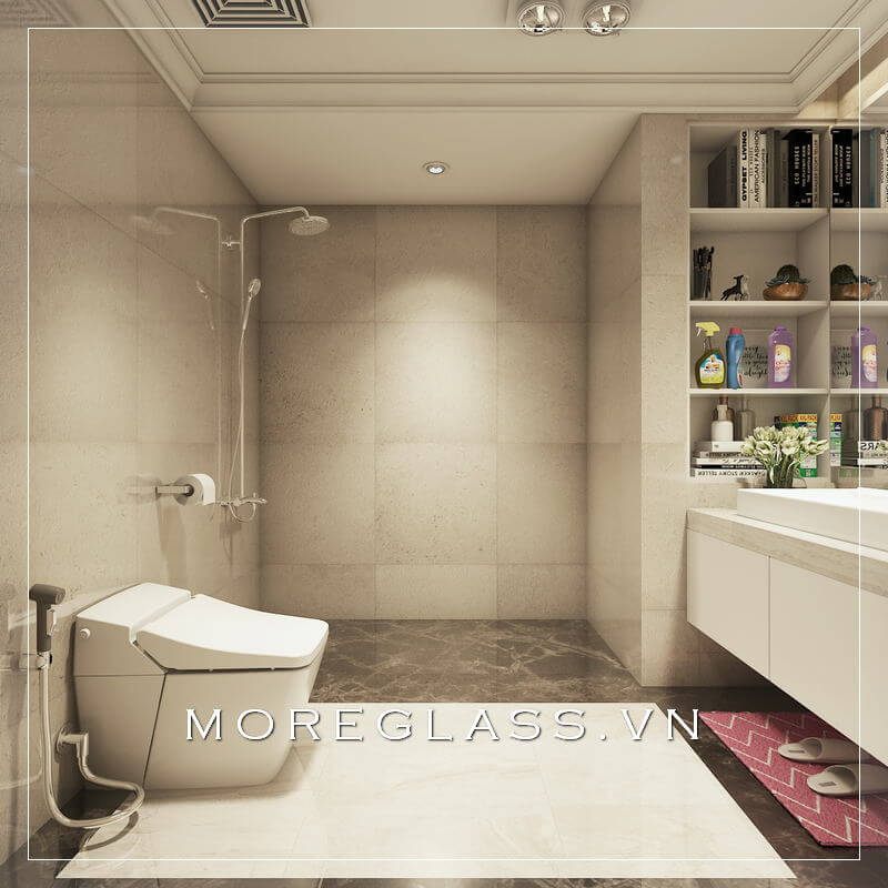 Thiết kế phòng tắm đẹp với sự bố trí hợp lý của nội thất và thiết bị vệ sinh, đảm bảo đủ tiện nghi mà vẫn giữ được sự đơn giản.