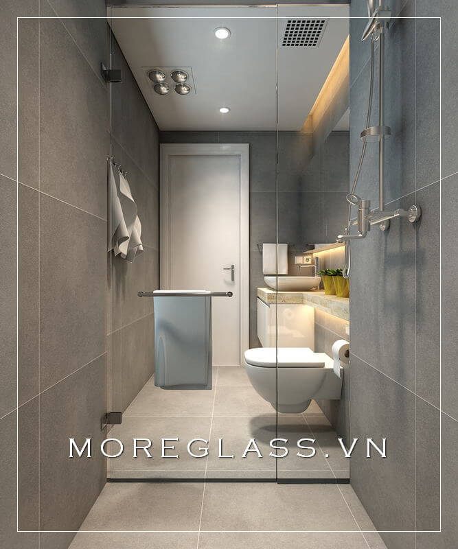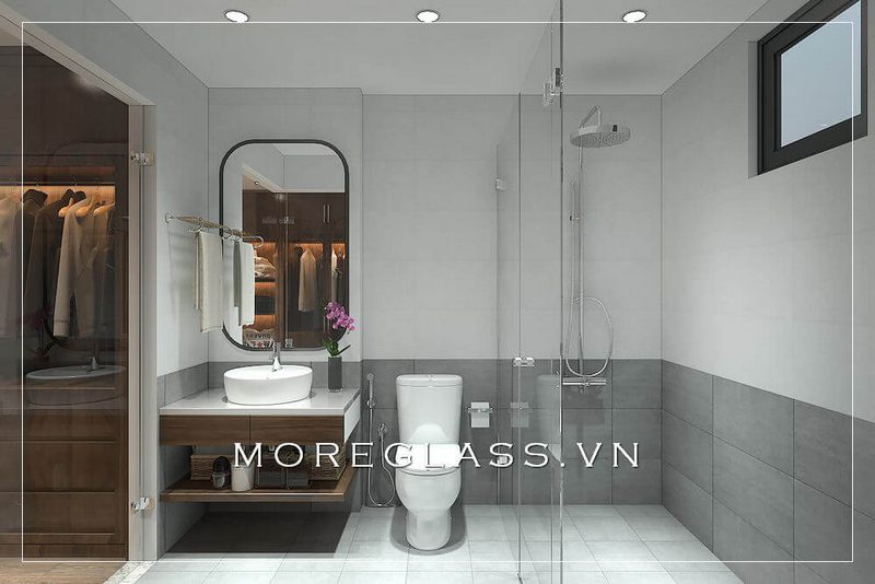 Mẫu thiết kế phòng tắm nhỏ được trang bị nội thất, thiết bị vệ sinh hiện đại và đơn giản để phù hợp với phòng ngủ của căn hộ, nhà phố.