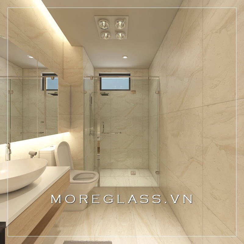 Mẫu phòng tắm đẹp, đơn giản và tiện nghi được trang bị vách ngăn kính cường lực cao cấp giúp ngăn chặn nước không bị hắt sang không gian xung quanh.